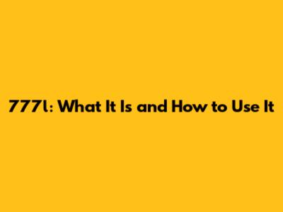 777l: What It Is And How To Use It
