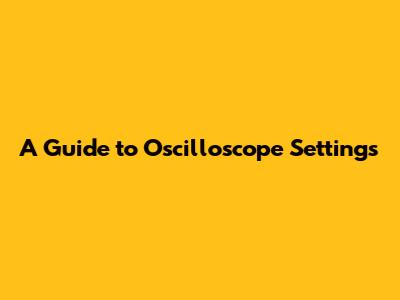A Guide To Oscilloscope Settings