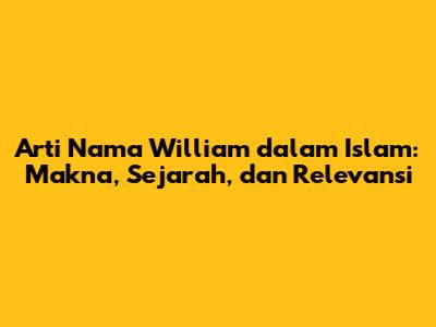 Nama William, seperti yang kita ketahui, bukanlah nama yang berasal dari tradisi Arab atau Islam. Nama ini memiliki akar dari bahasa Jermanik Kuno. Nama ini terdiri dari dua elemen: "wil" yang berarti "kehendak" atau "kemauan" dan "helm" yang berarti "helm" atau "pelindung". Jadi, secara harfiah, arti nama William adalah "pelindung yang kuat" atau "kehendak yang kuat". Meskipun bukan nama yang berasal dari tradisi Islam, kita dapat melihat bahwa makna yang terkandung di dalamnya memiliki nilai-nilai positif yang juga selaras dengan nilai-nilai Islam. Sifat pelindung dan kekuatan kehendak sangat dihargai dalam Islam, di mana umat Muslim diharapkan untuk melindungi diri mereka sendiri dan orang lain, serta memiliki tekad yang kuat dalam menjalankan ajaran agama.