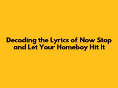 Decoding 'Now Stop And Let Your Homeboy Hit It' Lyrics