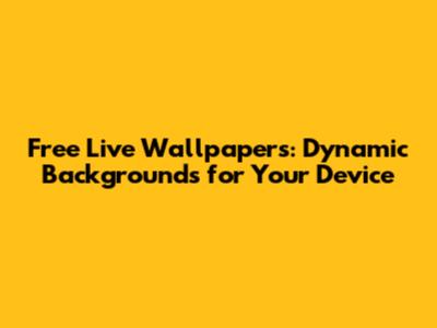 Free Live Wallpapers: Dynamic Backgrounds For Your Device