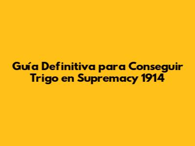Guía Definitiva Para Conseguir Trigo En Supremacy 1914