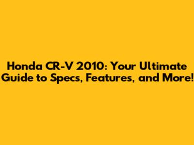 Honda CR-V 2010: Specs, Features & Repair Guide