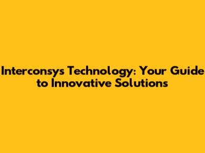 Interconsys Technology: Your Guide To Innovative Solutions