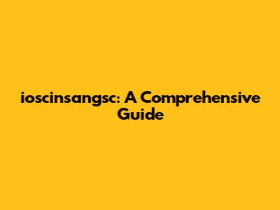 Ioscinsangsc: A Comprehensive Guide