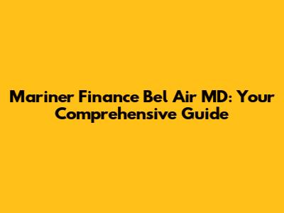 Mariner Finance Bel Air MD: Your Guide
