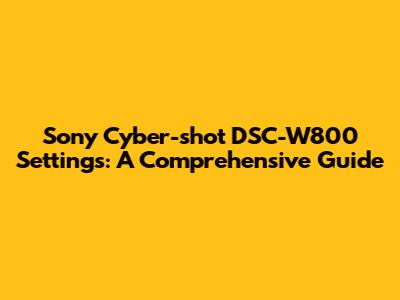Mastering Your Sony DSC-W800: Best Settings & Tips