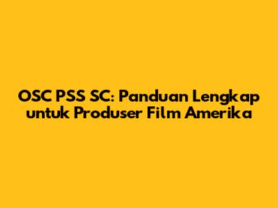 OSC PSS SC: Panduan Lengkap Untuk Produser Film Amerika