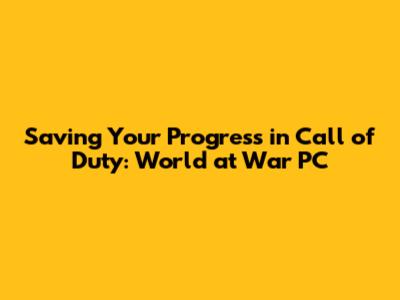 Saving Your Progress In Call Of Duty: World At War PC