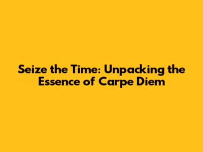 The Enduring Relevance of 'Seize the Time' in Modern Times
