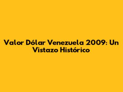 Valor Dólar Venezuela 2009: Un Vistazo Histórico