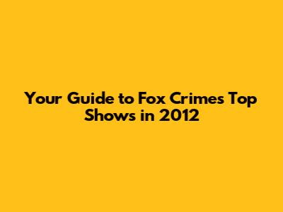 The Legacy of Fox Crime's 2012 Programming